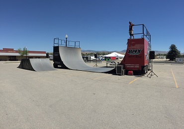 Fairs and other events that want a half pipe show. The area required is 30' By 40' feet. We prefer hard surfaces, but grass is an option. Set up is 2 1/2 hours